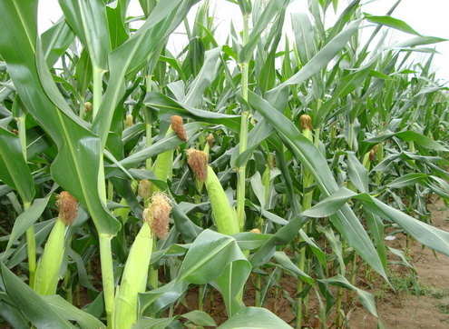Dent corn. 100-grain-weight 31.5 grams. 10-11T/ha yield. Cob height 115cm. Plant height 235cm.108 days duration in North of China.